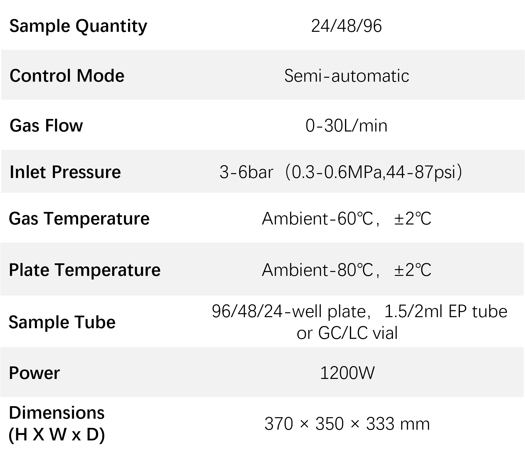 SmartVap N96 is suitable for high-throughput concentration of biological samples such as blood and urine. It is compatible with 96/48/24-well plate, chromatographic bottles and EP tubes. The input gas is evenly output to each nozzle through a multigas distribution system. It has the function of gas heating and plate heating, which can quickly and evenly concentrate the samples. Compared with the ordinary nitrogen evaporators, it can save at least 50% of the concentration time.