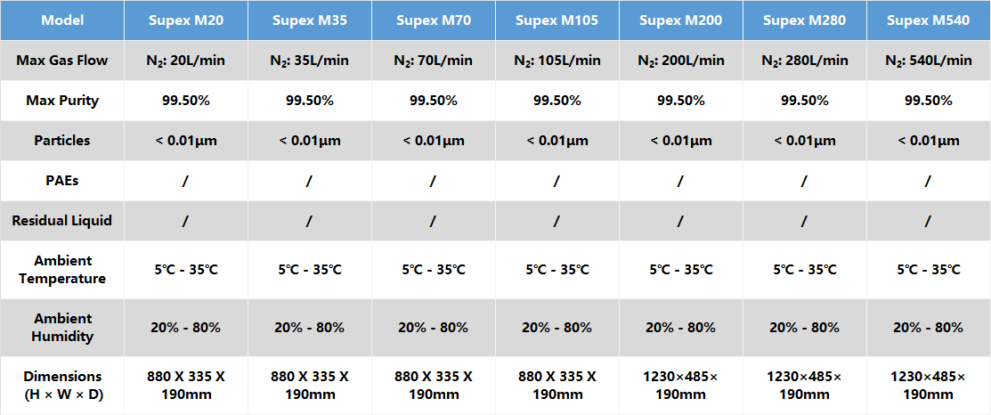 The Supex Series Split-type Nitrogen Generators adopt ultra-fine hollow fiber membrane separation technology. As well-designed and reliable products, they have wide applicability and can provide high-purity nitrogen solutions for instruments such as LC-MS, CAD, and ELSD.